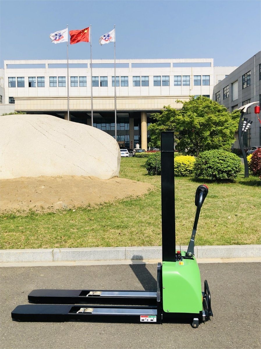 Zweitens handelt es sich um einen halbelektrischen Stapler, der auch manuelle Kraft benötigt, um zu ziehen und zu schieben.